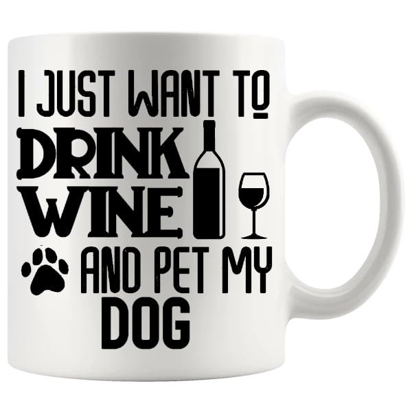 I Just Want To Drink Wine And Pet My Dog Mug Our novelty mug design, I Just Want To Drink Wine And Pet My Dog, is perfect for Fur Mum’s and Dads. #mugs #furmom #furdad #dogmug