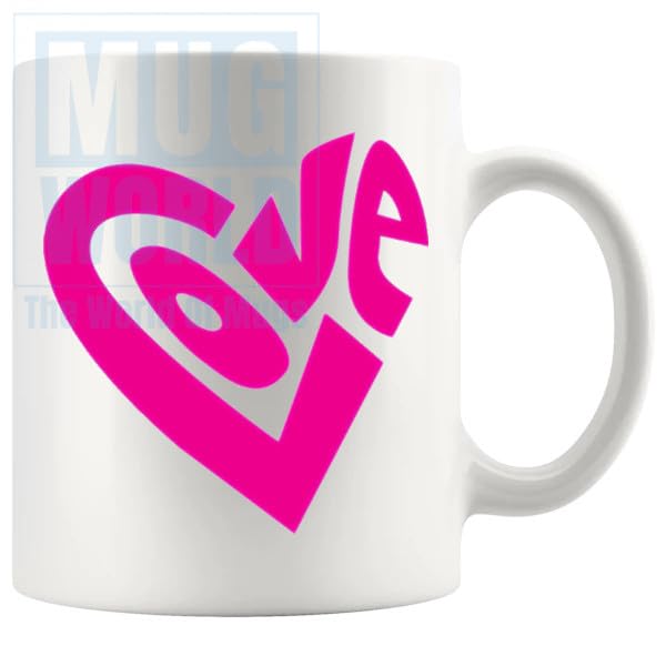 Our novelty mug design, Love Heart Pink, is the perfect gift for that special someone! Give them a present that they will use each and every day.