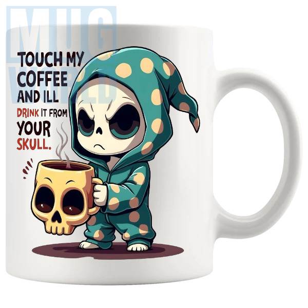 Our novelty mug design, Touch My Coffee And I’ll Drink It From Your Skull, is the perfect gift for anyone who loves their coffee! Let them know just how much you care, with a gift they will use every day!